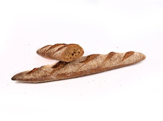 Een meergranen stokbrood, gemaakt volgens eigen desemcultuur en zout. Verder niets anders dan water en bloem.